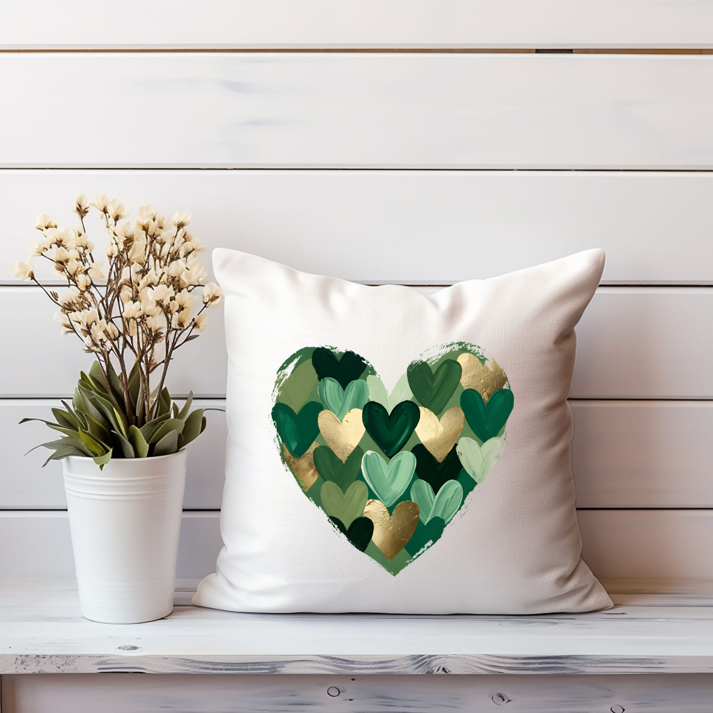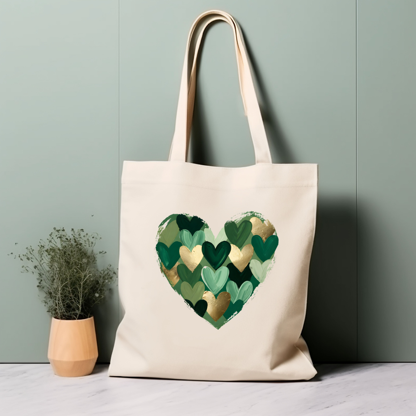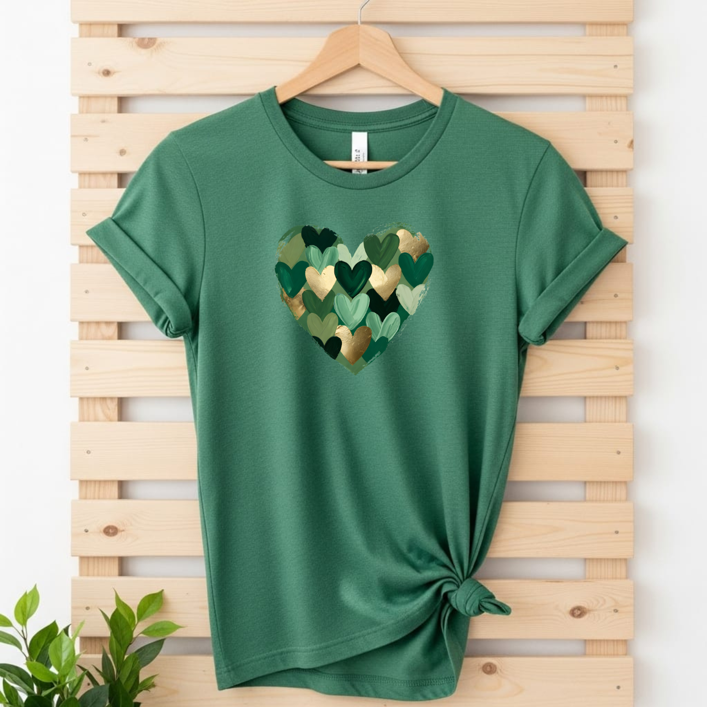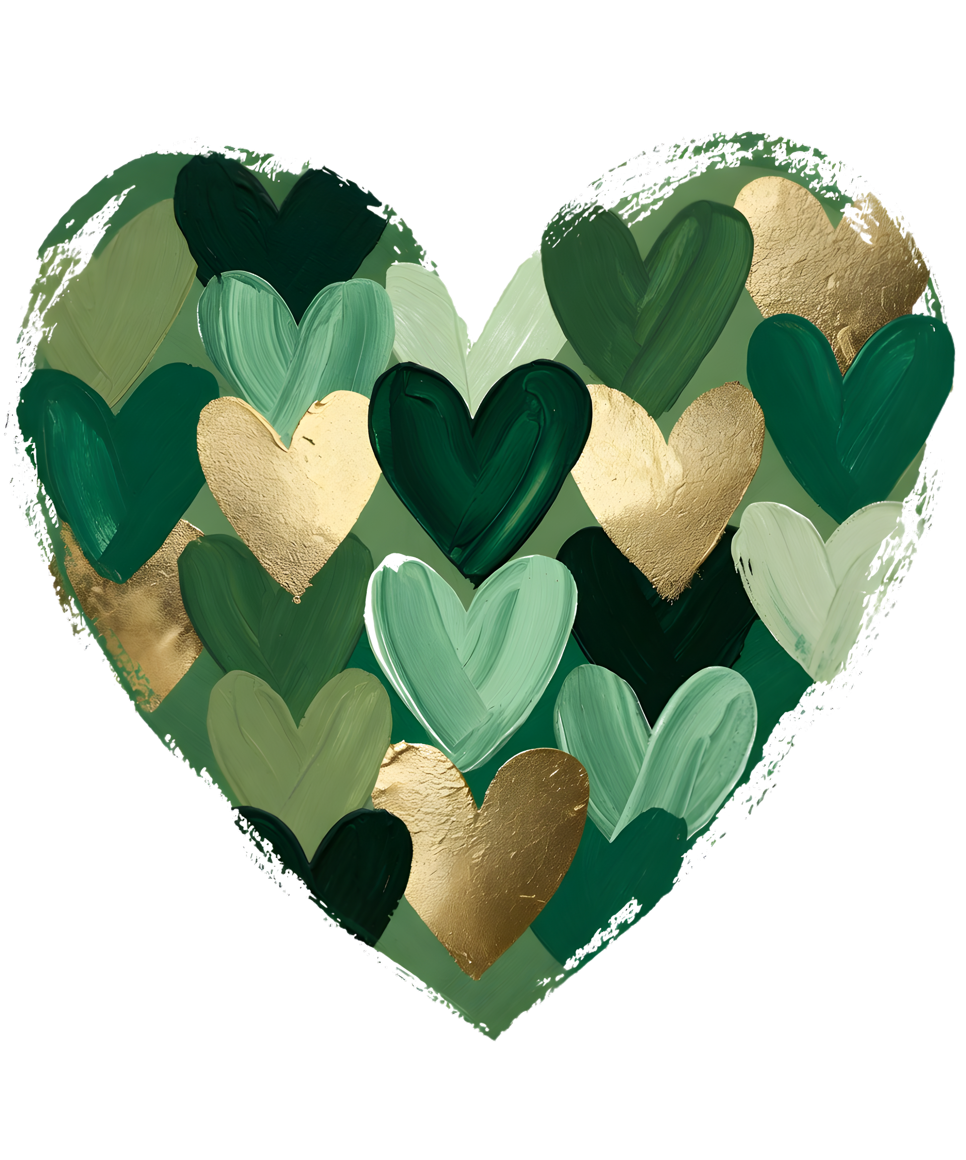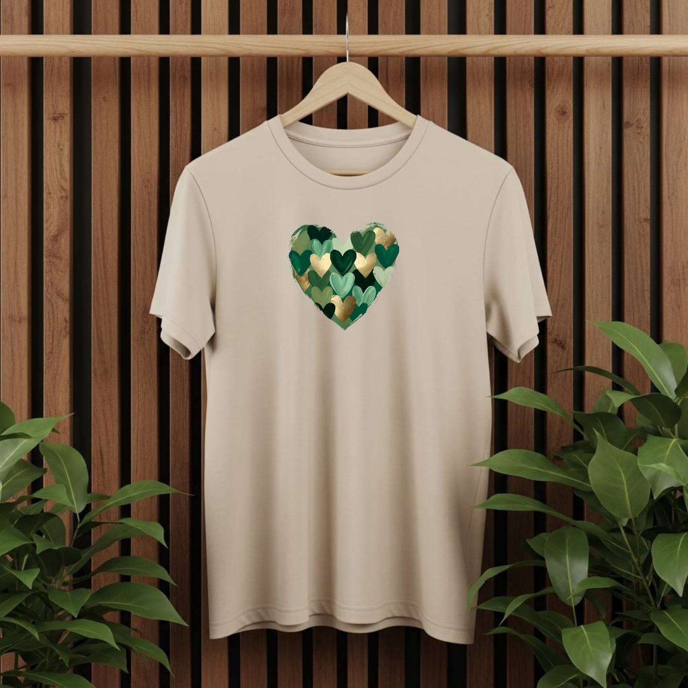 Egal ob Mode-Statement oder Wohnakzent – dieses Motiv bringt frischen Wind in dein Zuhause. Das Herz im künstlerischen Mosaik-Stil kombiniert tiefe Grüntöne mit eleganten Gold-Akzenten und ist ein echtes Multitalent für deine DIY-Projekte.